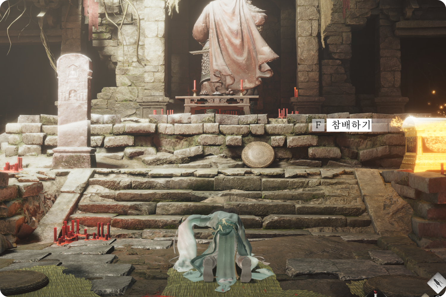 길 끝의 사다리 를 타고 올라오면 처음 봤던 사당 건물 내부로 돌아오게 되는데