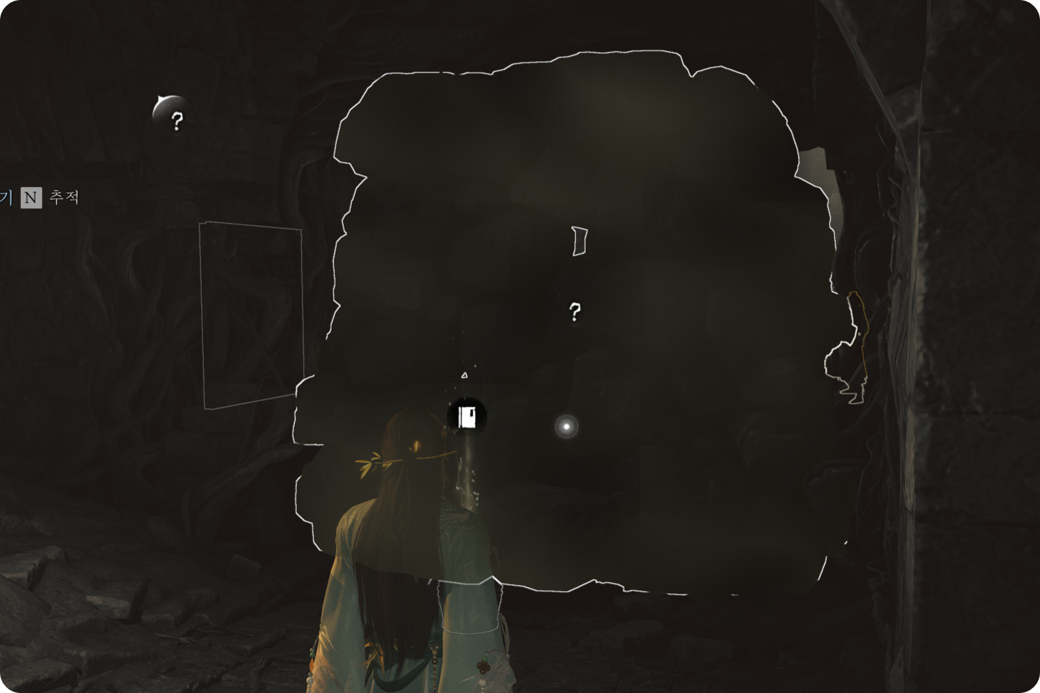 안쪽에서 용호채 도적들이 떠드는 소리를 들으며 진입하다 보면