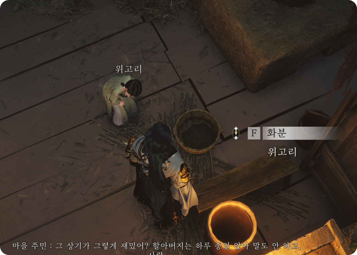 마을의 상박장 뒤편에서 위아만 과 대화합니다