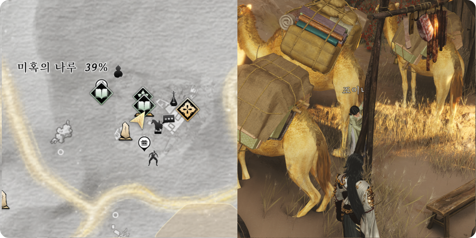 다시 낙타 역참으로 돌아와 이 위치의 낙타 에게